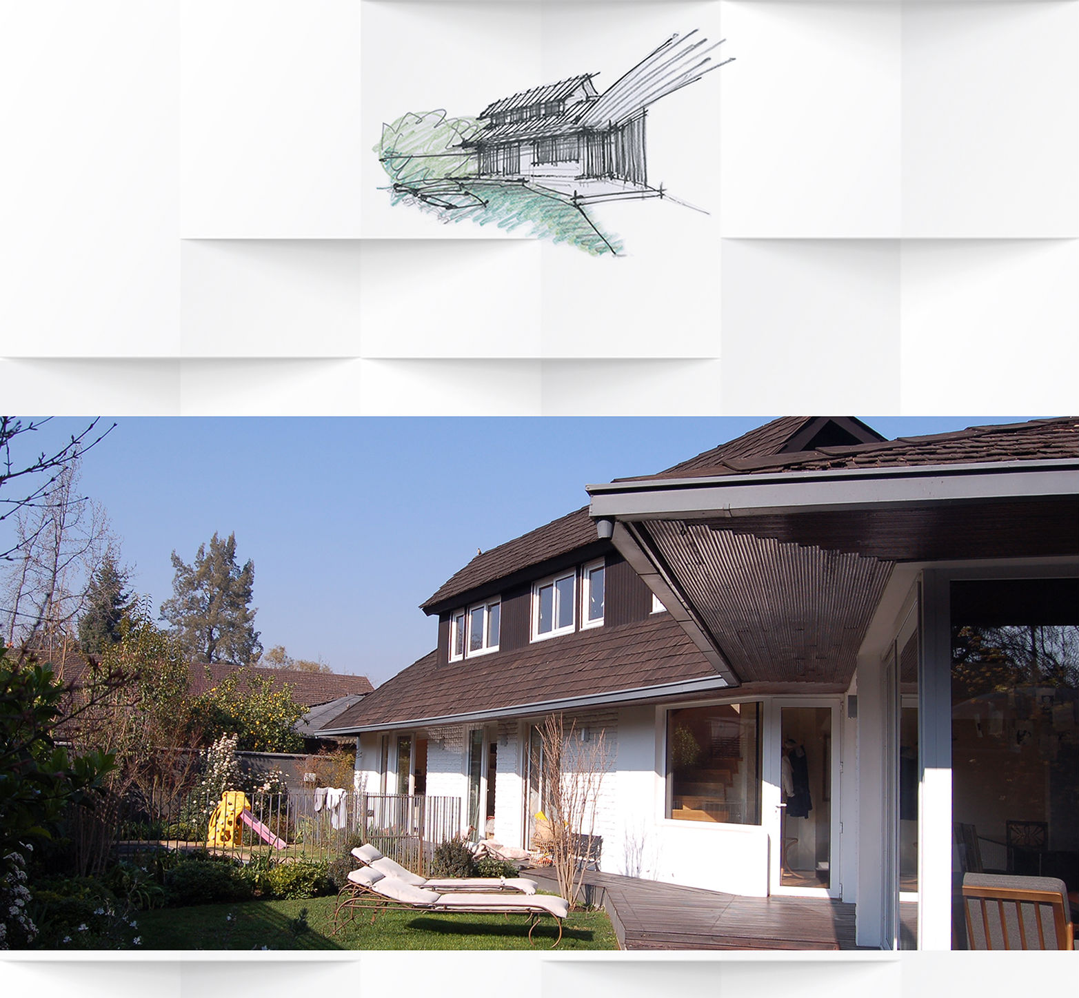 Ampliación y modificación general casa bermúdez en vitacura I Ampliación y Modificación general para la casa del Sr. Marcelo Bermúdez en Vitacura / Diseño asociado a olaya cuadra G. del R. Se podría decir que esta casa, como toda modificación presentaba sus complicaciones pero, dada sus características de escala, de orientación y otras, ofrecía posibilidades importantes.