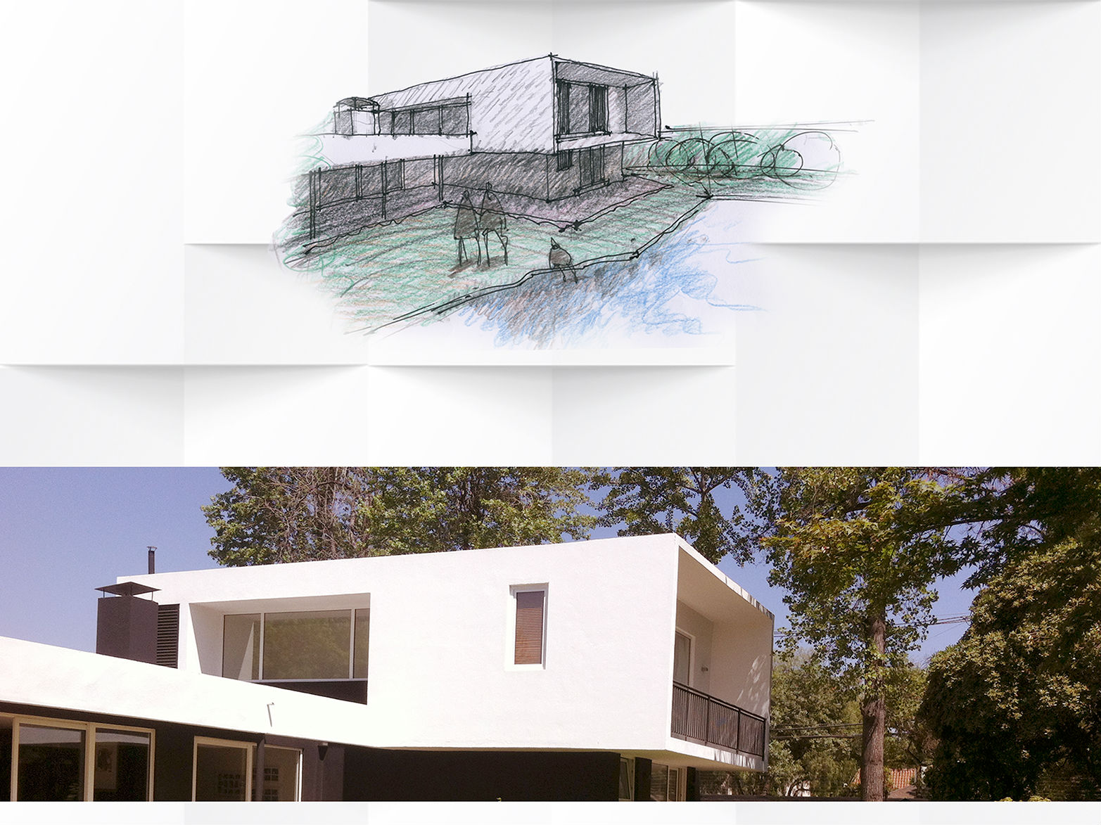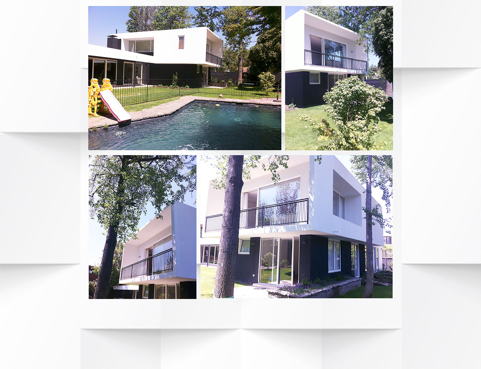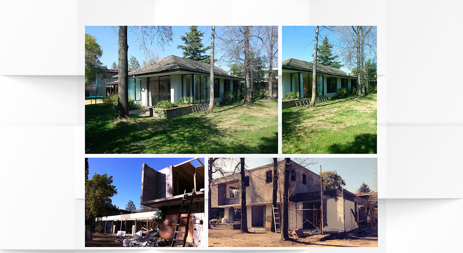 Ampliación y modificación general casa Bermúdez Vitacura II Sup. original: 200m2; modificados: 80m2; nuevos: 80m2. Proyecto construído. Diseño asociado a Olaya Cuadra Esta modificación y ampliación presentaba varios puntos que atender: la planimetría existente para efectos de diseño de ampliación, no obedecía a un patrón, módulo u orden que pudiera facilitar una intervención